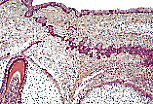 Les cellules palissadiques de ce dernier refoulent leur noyau au pôle apical vers le stratum intermedium. Une lame basale sépare le mur épithélial interne de la papille conjonctive. |
